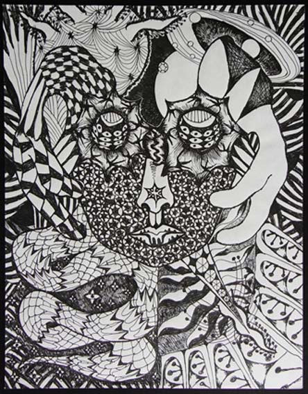 モノクロのイラスト(作品の大半は竜がモチーフ)を